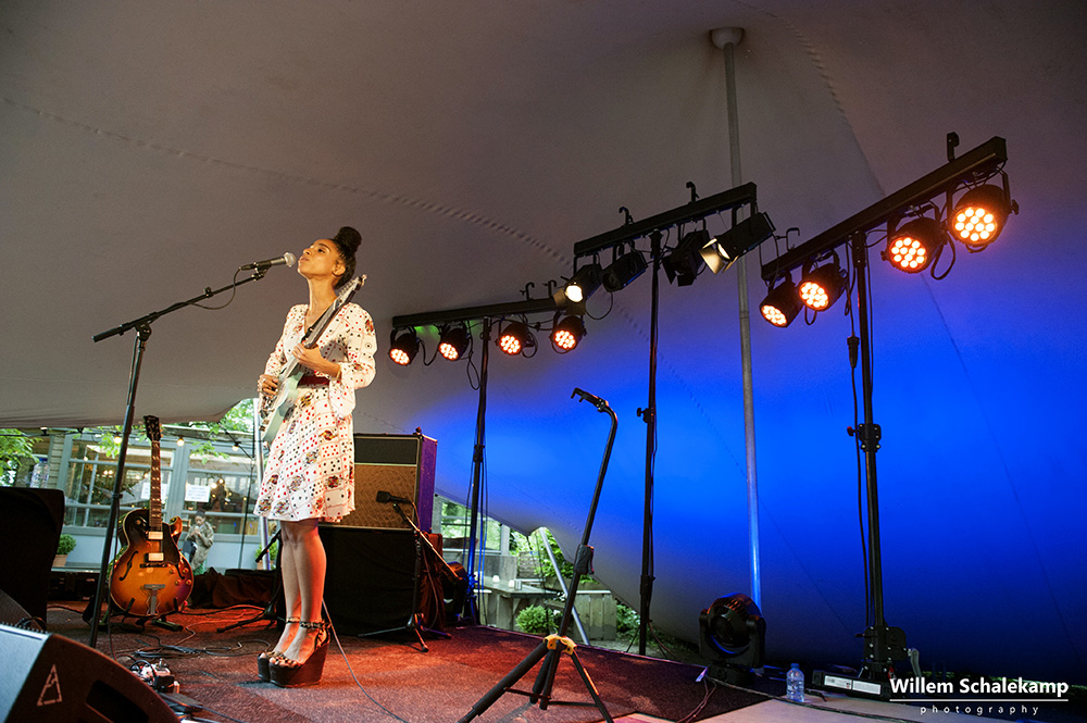 Tien dagen geleden stond Lianne La Havas nog op het hoofdpodium van Pinkpop en speelt ze in volle stadions als support van Coldplay. Het contrast is dan ook groot wanneer ze solo in de intieme tuin van de Tolhuistuin staat voor een ademloos luisterend publiek. Alleen de merels lieten zich niet van de wijs brengen.
