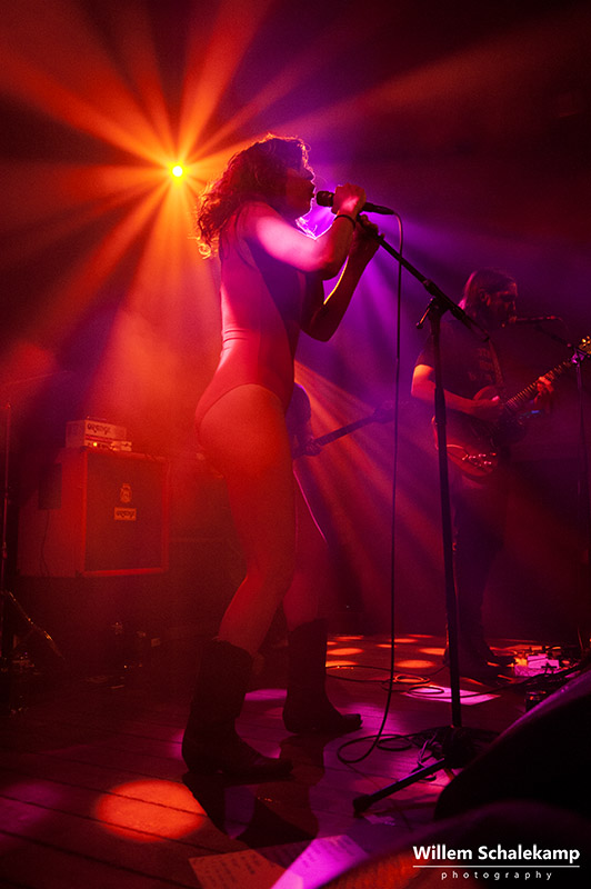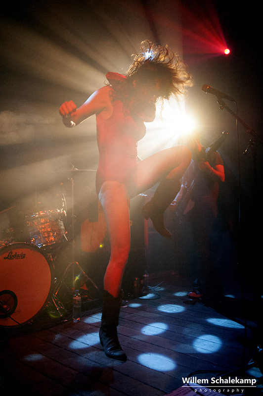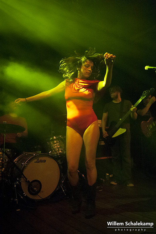 Terwijl de bovenzaal van Paradiso nog na dampte van het feest dat Skip & Die even daarvoor gegeven had was het de beurt aan de Texanen van A Giant Dog om onder aanvoering van Sabrina Ellis met een combinatie van glam- en garagerock de tent verder op zijn kop te zetten. Een heerlijk energieke liveband die vandaag (11 december) nog te zien is in De Effenaar, Eindhoven en morgen in Vera, Groningen.
