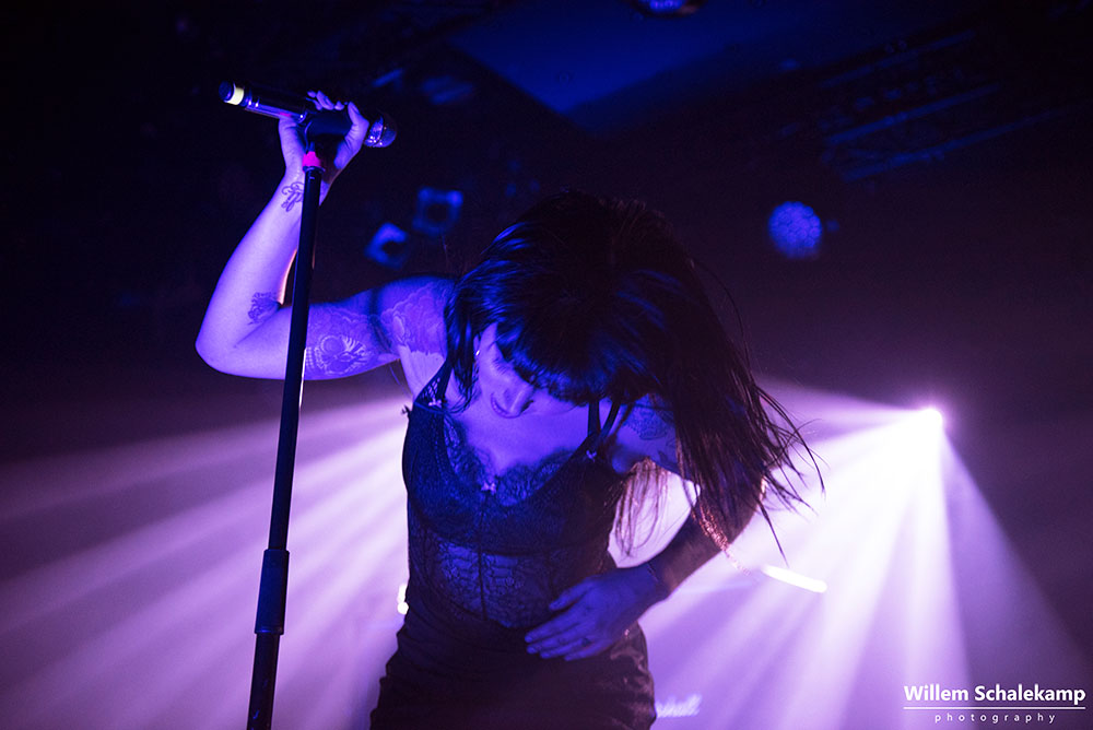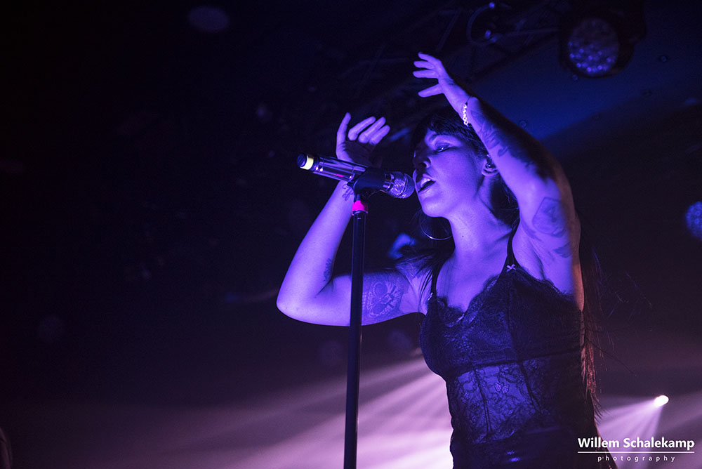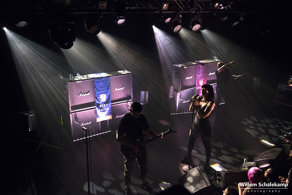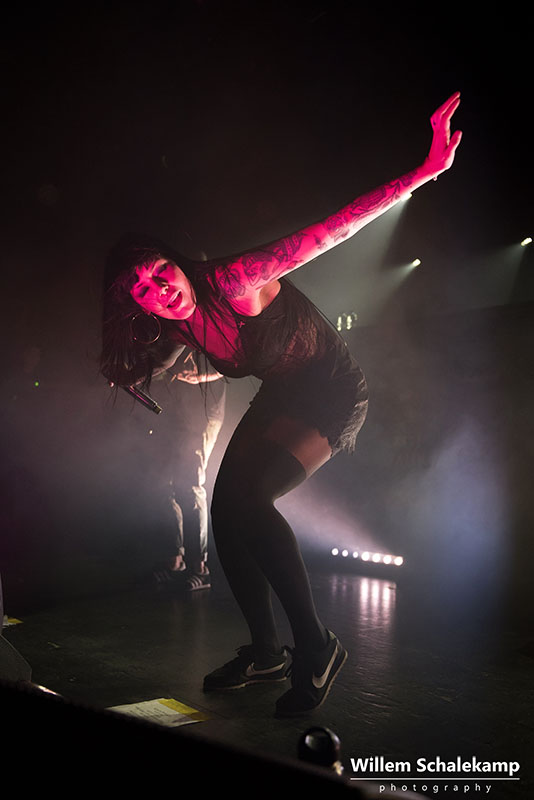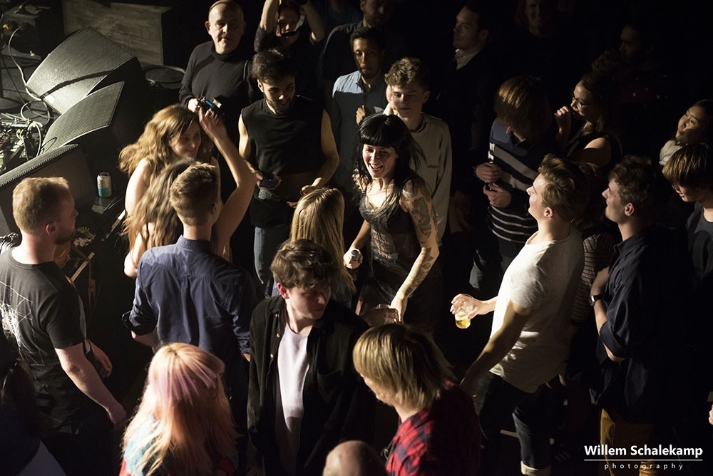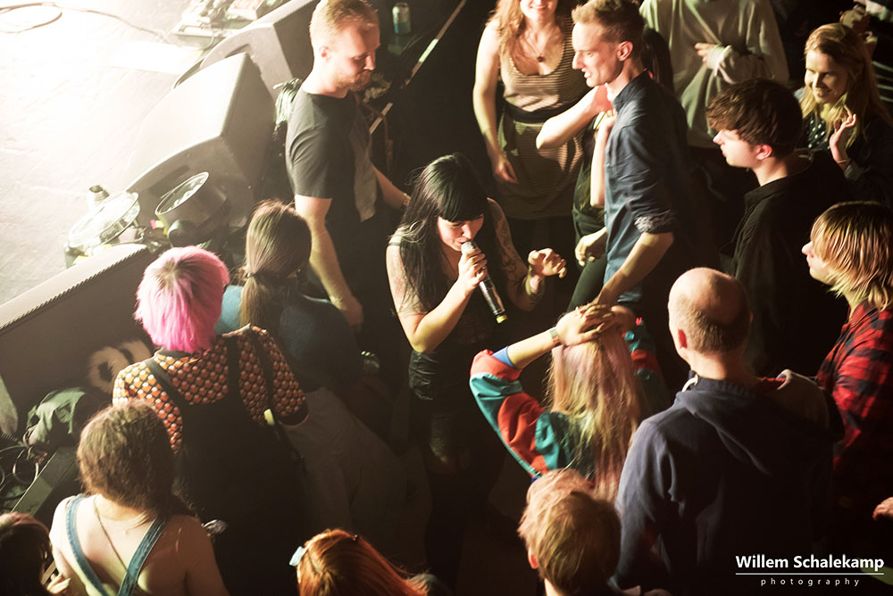‘Komt het door Valentijnsdag of is de populariteit van Sleigh Bells de laatste jaren zo afgenomen?’ Een vraag die onwillekeurig bij je opkomt als je om je heen kijkt en het gesloten balkon van de Tolhuistuin ziet. In 2010 stond de band namelijk nog in de grote zaal van Paradiso, maar afgelopen dinsdag lukte het ze niet eens om de locatie in Noord uit te verkopen. Desondanks pakte de band onder aanvoering van Alexis Krauss met tomeloze energie het wel aanwezige publiek in. Dat publiek kreeg volkomen gelijk dat ze er voor gekozen hadden daar hun Valentijnsavond door te brengen.