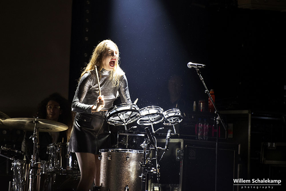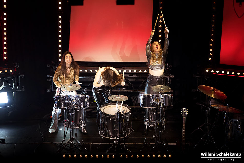 Zes jaar geleden stonden de zusjes HAIM voor het eerst in Paradiso. Toen op het London Calling festival, maar wel meteen in de grote zaal. Kort daarop kwamen ze nog enkele malen terug en deden tussendoor een kleine show in Bitterzoet. Vanavond waren Este, Danielle en Alana terug in de stampvolle poptempel. Helaas was Danielle ziek en daardoor haar stem kwijt wat ten koste ging van de harmonieën en de lengte van de setlist, maar wat gelukkig geen enkele invloed had op haar gitaarspel. De beelden…