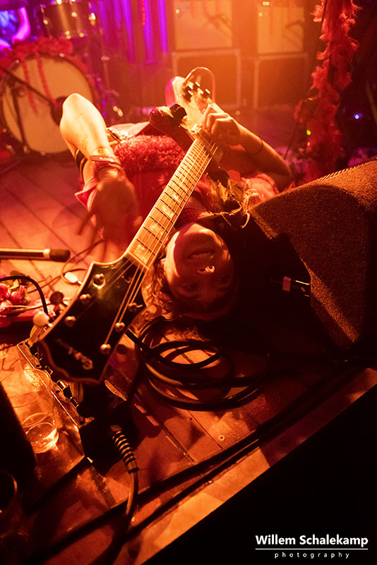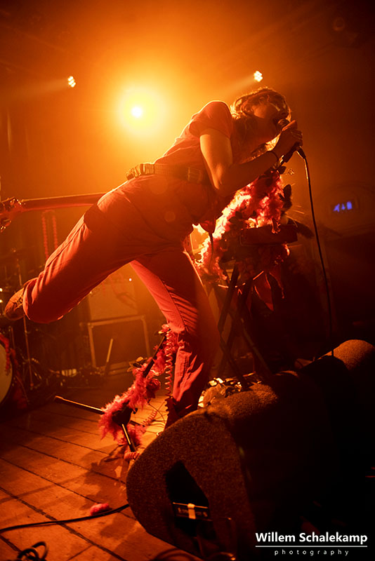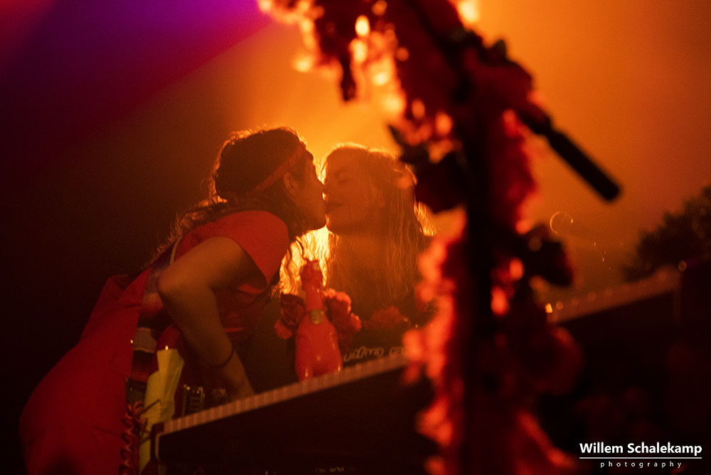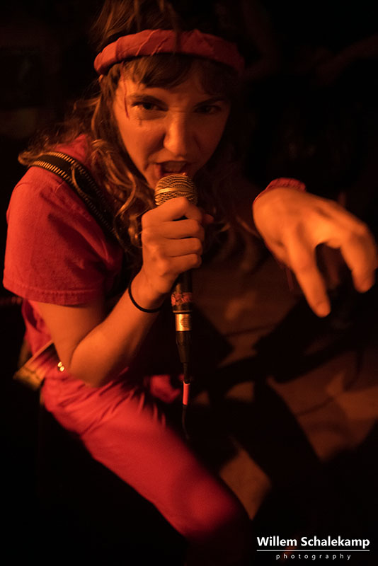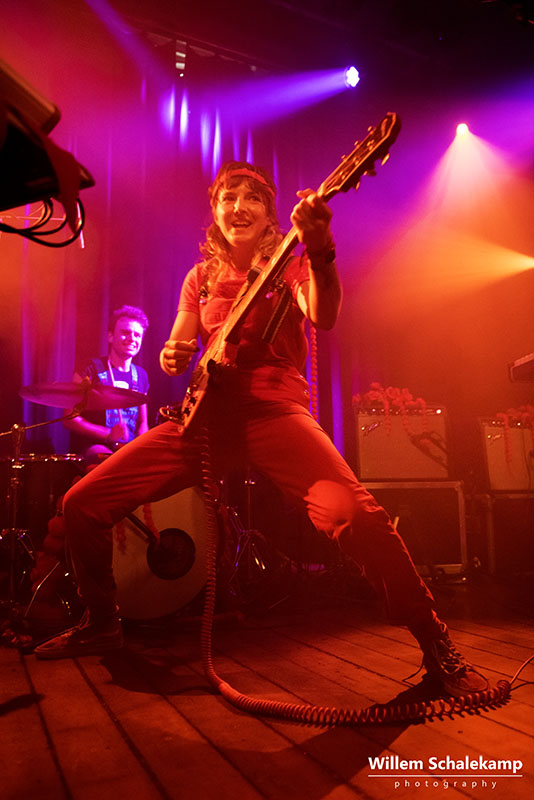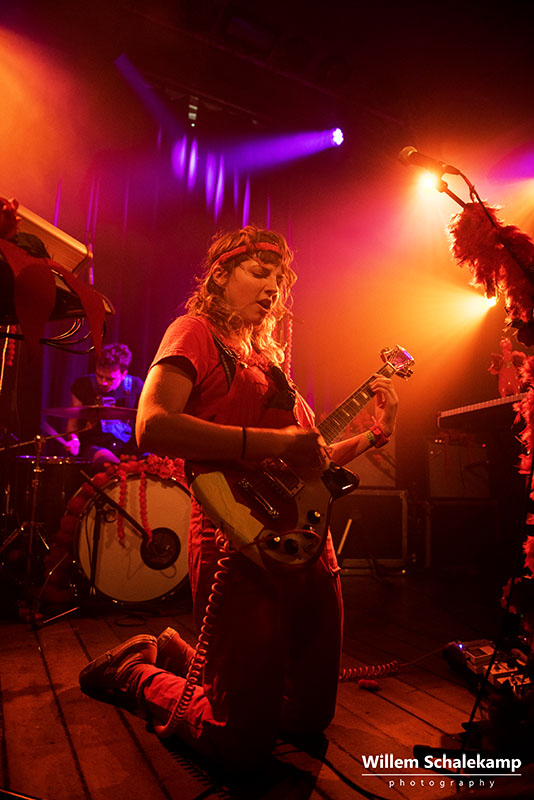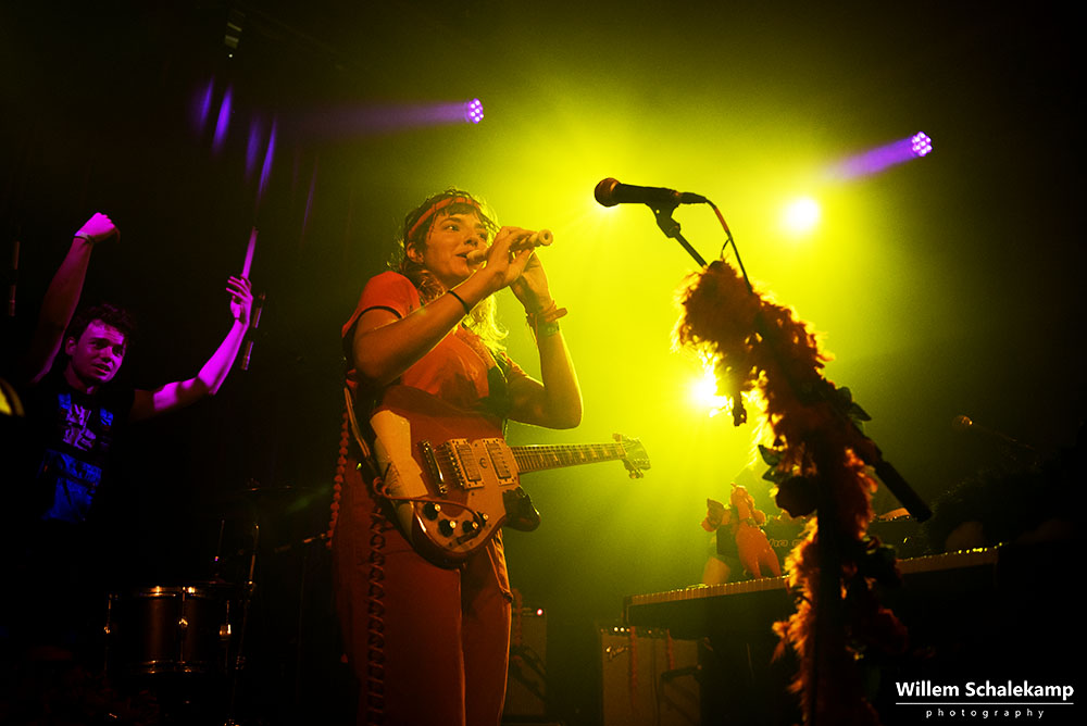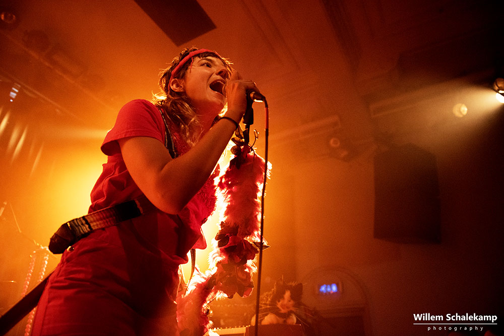 De Amerikaanse Caroline Rose maakt catchy indiepop liedjes en bracht dit jaar haar tweede album ‘Loner’ uit. Zoals altijd volledig in het rood gekleed stond ze met band, plastic kip en fluffy kat voor het eerst op Europese bodem in de bovenzaal van Paradiso en pakte deze met veel (wrange) humor in. Zondag 8 juli kun je haar nog zien op het Metropolis festival in Rotterdam. Grijp die kans!