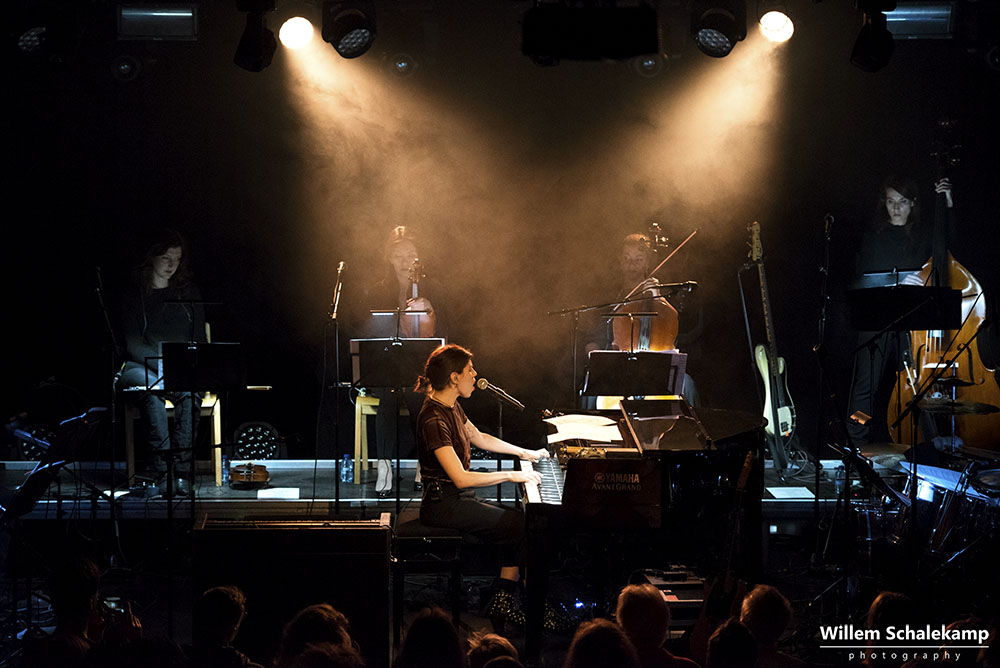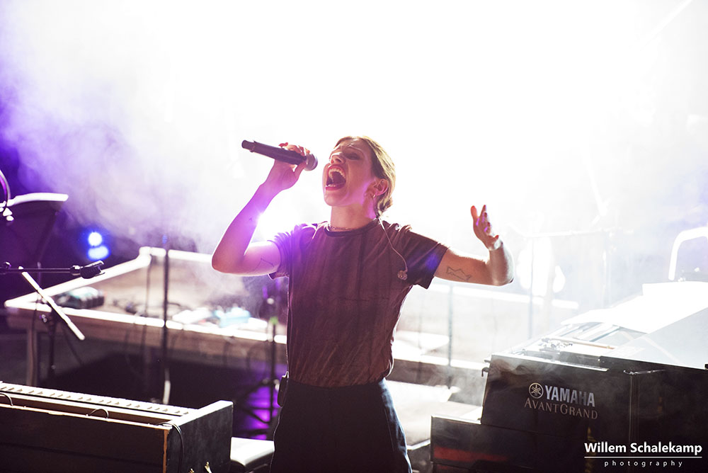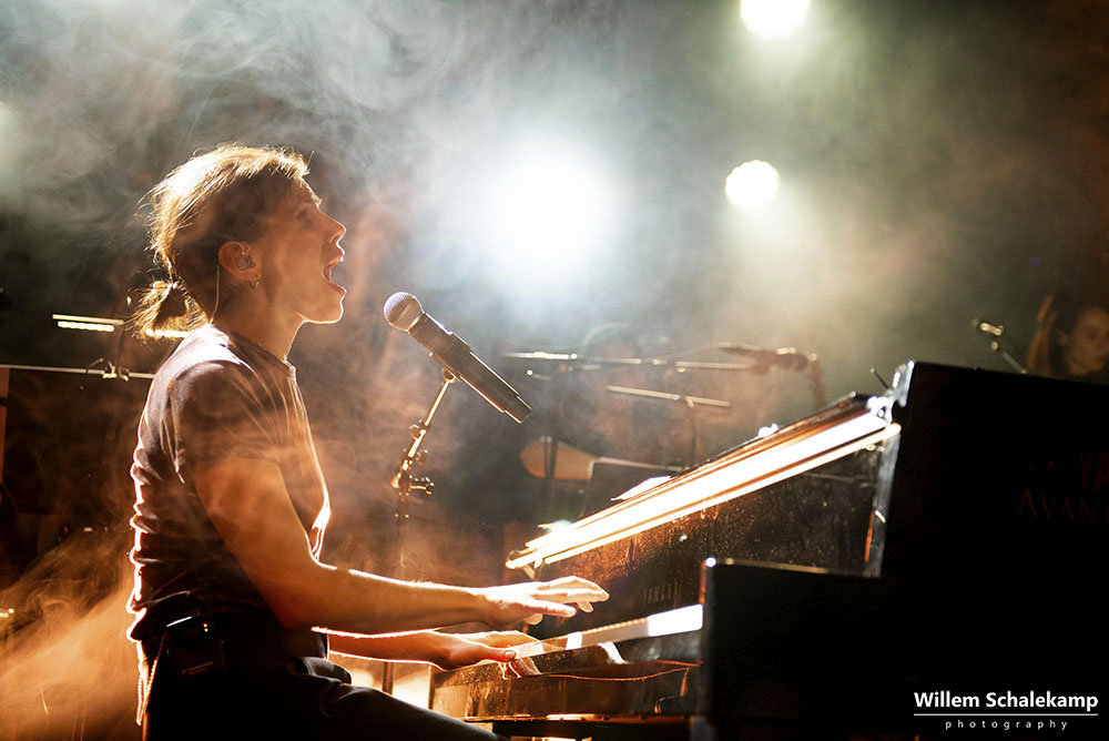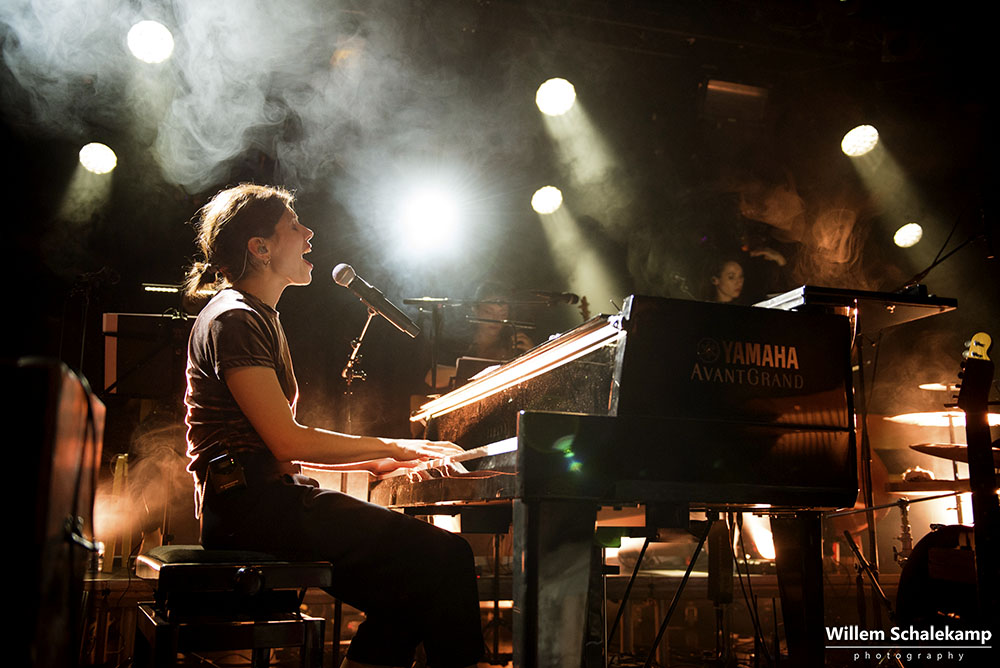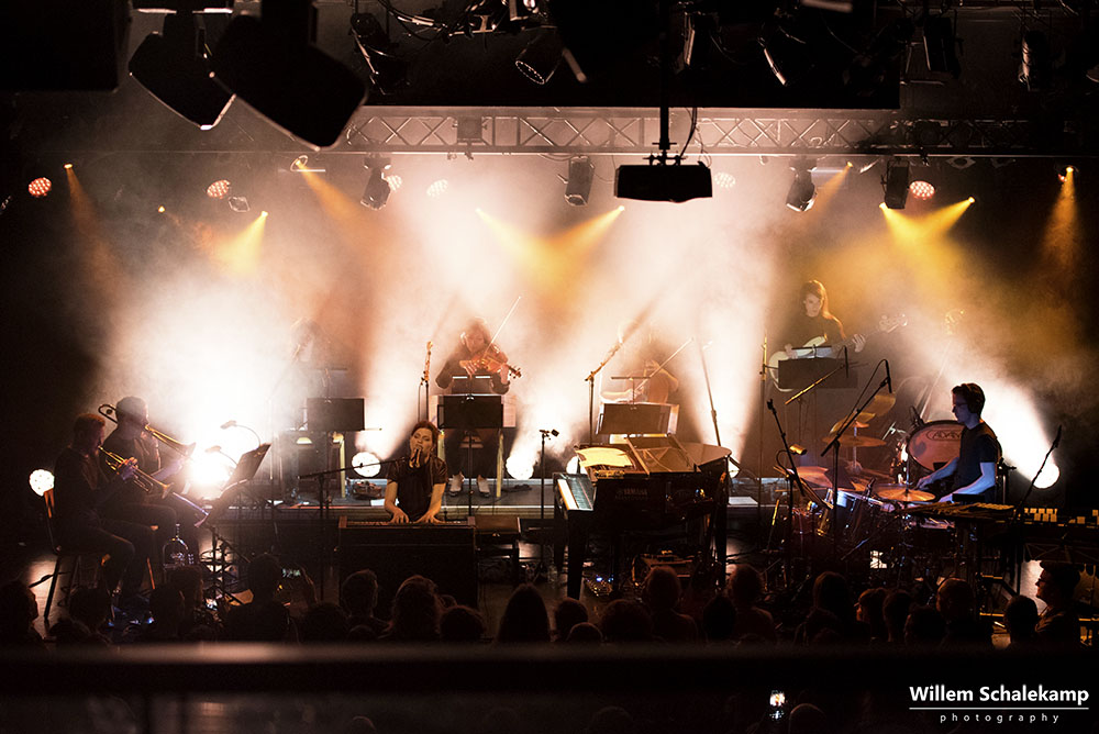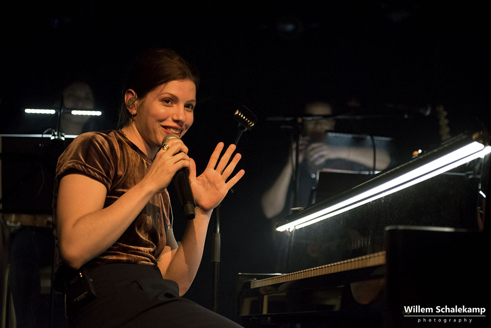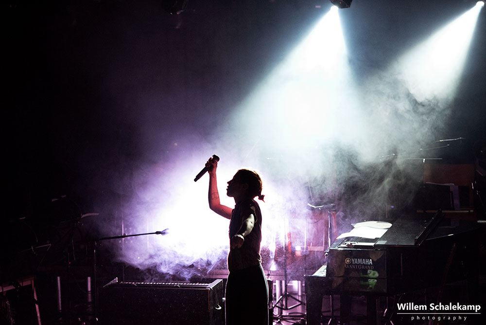 Tien jaar geleden verraste de toen 19 jarige Oostenrijkse Anja Plaschg onder haar artiestennaam Soap&Skin de muziekwereld met haar donkere en indringende debuutalbum ’Lovetune For Vacuum’. Datzelfde jaar speelde ze in de grote zaal van Paradiso, voornamelijk zittend achter haar piano. Het was ook in 2009 dat haar vader plotseling overleed wat uiteindelijk resulteerde in het aangrijpende tweede album ‘Narrow’. De live optredens werden zeer intens, het publiek veelal overdonderd achterlatend. En daarna werd het stil. Anja werd moeder en deed nog wel aan wat projecten mee, maar zocht vooral de rust. Tot vorig jaar oktober, toen was daar ineens ‘From Gas To Solid/You Are My Friend’. Ook weer intens, maar op een andere manier. Ze lijkt haar leven meer onder controle te hebben en dat geeft ook een bepaalde rust mee aan het album. Een Europese tour volgt die ze afsloot in de Tolhuistuin. Begeleid door strijkers en blazers speelt ze een groot deel van haar nieuwe album, aangevuld met een aantal covers als ‘Voyage Voyage’ (Desireless), ‘Pale Blue Eyes’ (Velvet Underground) en ‘Goodbye’ (Apparat). En tussendoor het hartverscheurende ‘Vater’. Zoals op haar laatste album is ook haar podiumpresentatie rustiger, haar emoties meer onder controle. Haar ontspannen te zien lachen was misschien wel het mooiste van alles.