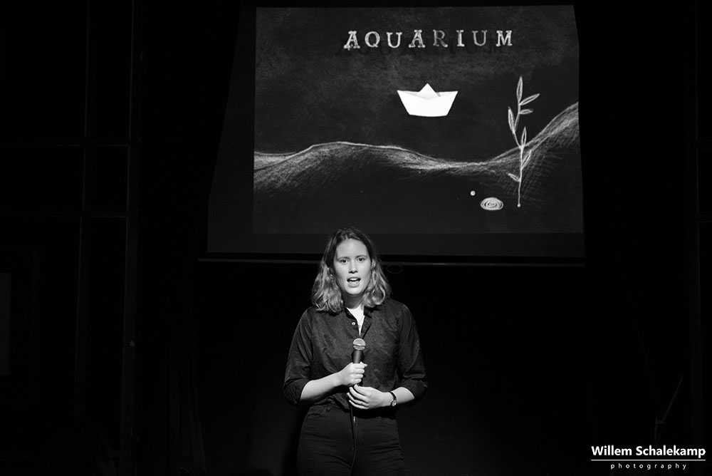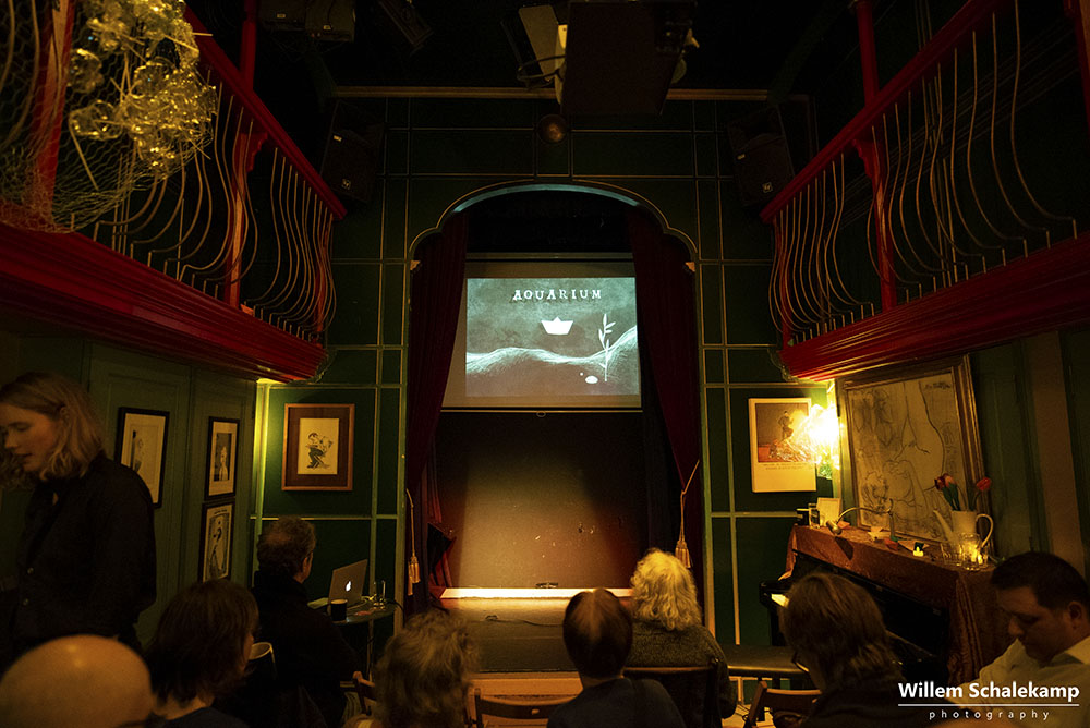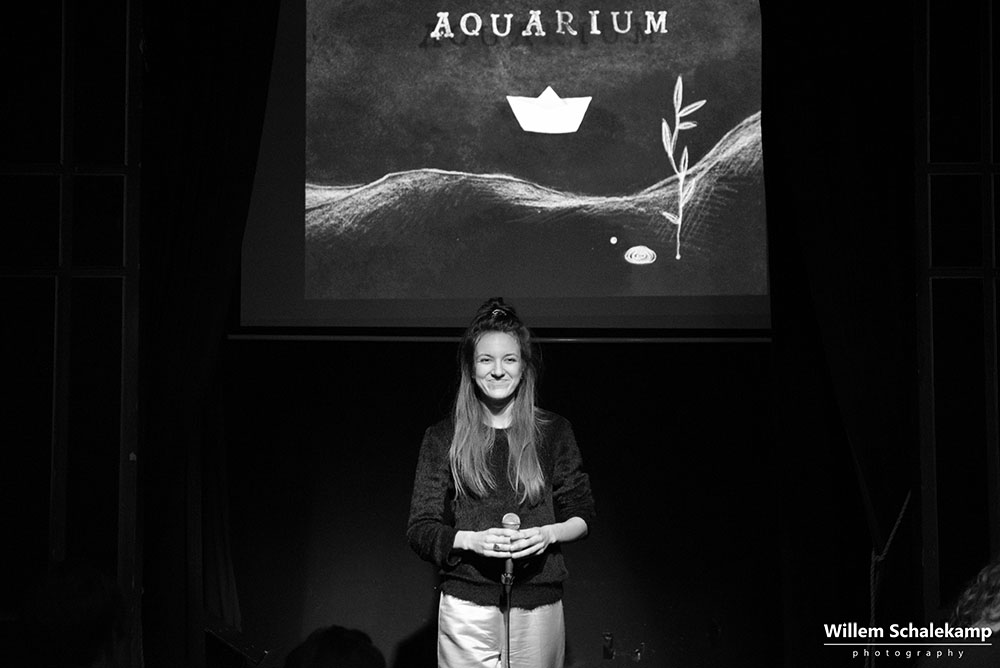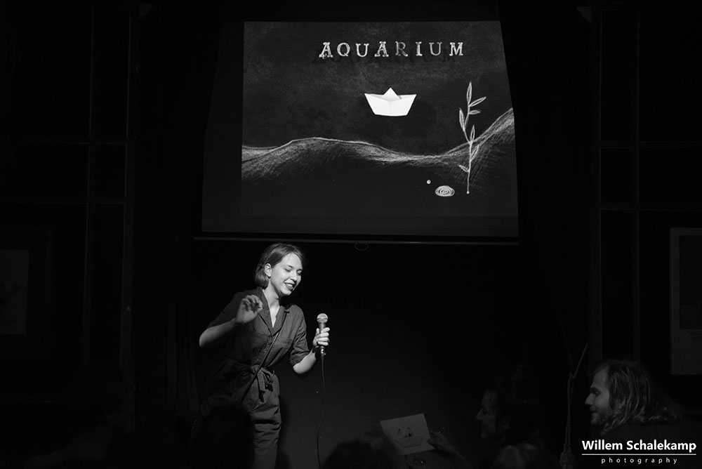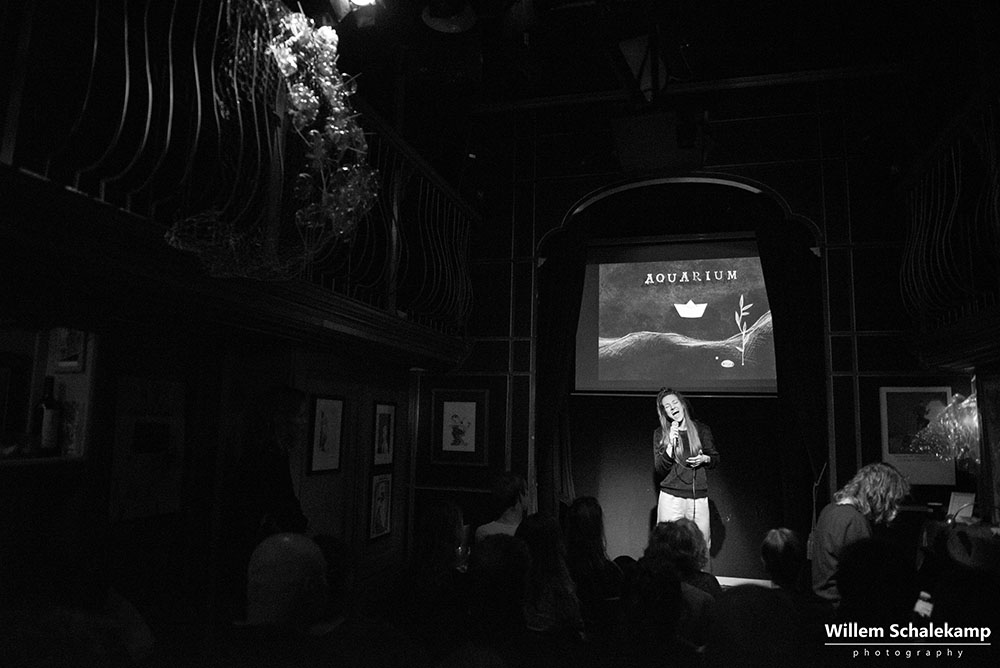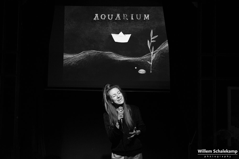 Zangeres en theatermaker Milou Mignon presenteerde in het intieme, sprookjesachtige Torpedo theater in Amsterdam haar nieuwe album Stadskoraal. Een album gemaakt vanuit de gedachte dat we allemaal in ons eigen aquarium leven en hoe we daar uit kunnen breken en de verbinding met anderen aan kunnen gaan. Het album wordt als digitale download aangeboden in een prachtig vormgegeven boekje met teksten van Milou en illustraties van Tessa van Vuren. Illustraties die ook verwerkt zijn in de documentaire Aquarium in samenwerking met Sterre Slikkerveer die ook op de release avond vertoond wordt en waarin Kokob, een blinde man van Eritrese afkomst gevolgd wordt. Naast de vertoning van de documentaire zingt Milou een aantal liedjes van haar album, begeleid door Jelle Visser op piano. Van het publiek wordt ook wat gevraagd, want verbinding maken vraagt om interactie.