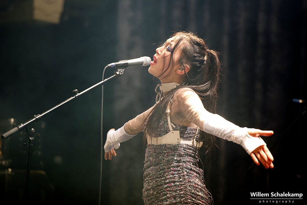Sasami Ashworth aka SASAMI zagen we eerder als toetseniste bij Cherry Glazerr, maar vanaf 2018 ging ze haar eigen muziek maken en bracht twee albums uit. Vanavond mocht ze openen voor Mitski en deed dat met een heerlijk energieke show. De beelden…