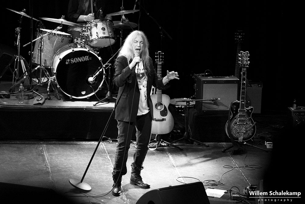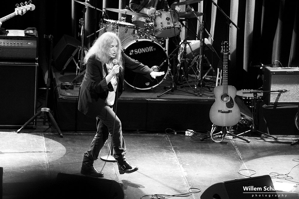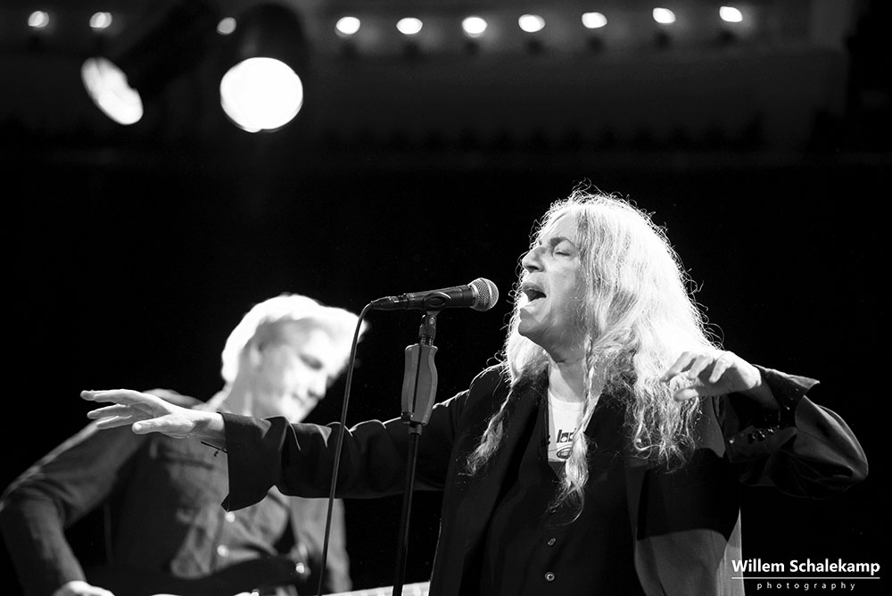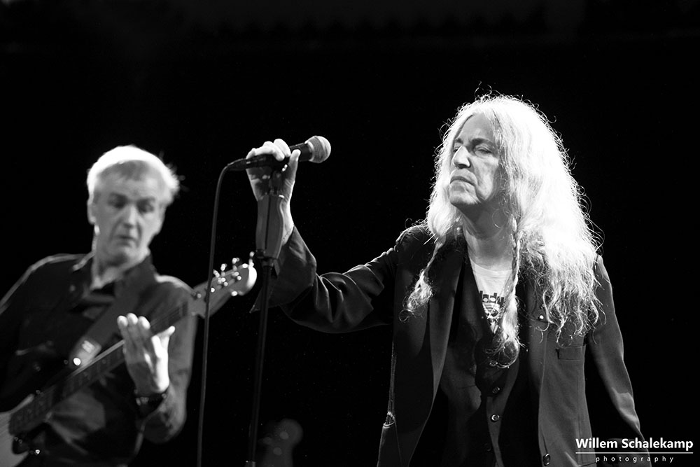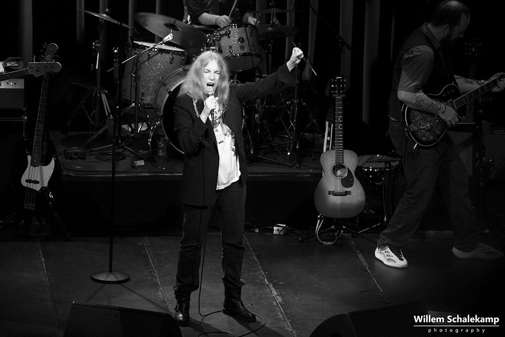 Patti Smith is weer voor twee uitverkochte avonden terug in haar geliefde ‘Paradisio’. De eerste avond was een behoorlijk felle set waar de 75 jarige Godmother of Punk voluit ging met haar stem en energie. Zoon Jackson Smith mocht bij afwezigheid van Lenny Kaye naar hartenlust soleren met zijn gitaarpartijen. Pas bij het laatste nummer voor de toegift, Gloria, verscheen Lenny op het podium. Oh ja, leg vooral niets op het podium waarvan jij denkt dat Patti dat interessant zou moeten vinden. Ze flikkert het er gewoon weer vanaf. ‘Dit is mijn podium en geen vuilnisbak!’ De beelden…