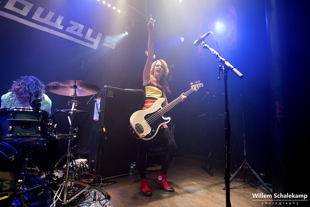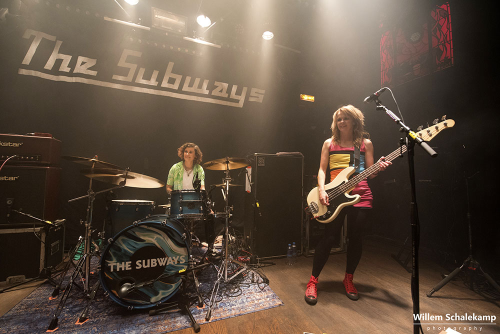Openen met Oh Yeah en afsluiten met Rock & Roll Queen, de twee grootste hits van debuutalbum Young For Eternity uit 2005. Dat is wat The Subways vanavond doet op de afsluitende show van hun Europese tour in misschien ook wel de kleinste zaal van de tour, Bitterzoet. Ook ik zag ze niet eerder zo intiem sinds 2004. Het enthousiasme van de band is er niet minder om. Billy Lunn en Charlotte Cooper, inmiddels moeder geworden, stuiteren nog met onverminderde energie over het podium terwijl Camille Phillips, die Josh Morgan vervangt als drummer, het hele zaakje nog eens verder opstuwt. De beelden…