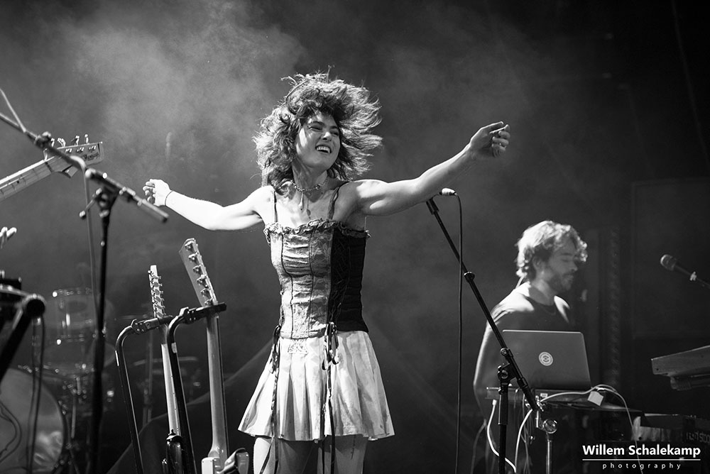 Vijf jaar geleden zag ik haar voor het eerst tijdens London Calling in Paradiso, Miya Folick. Een jonge muzikante met kort geschoren haar die vrolijk vroeg of ze met haar schaap op de foto mocht. Een knuffel die ze onderweg bij een tankstation had gekocht omdat ze dan niet zo alleen zou zijn tijdens de tour. Op het podium bracht ze die avond rustig haar prachtige liedjes. Hoe anders is dat vanavond in de Melkweg wanneer ze het voorprogramma van Tove Lo verzorgt. Ze heeft haar haar laten groeien en is niet langer alleen, maar heeft een band om zich heen verzameld. Wat we horen is een veel stevigere versie van Miya Folick, maar met dezelfde prachtige blije uitstraling. En ja, stiekem vond ik dit veel beter dan de hoofdact van de avond. De beelden…