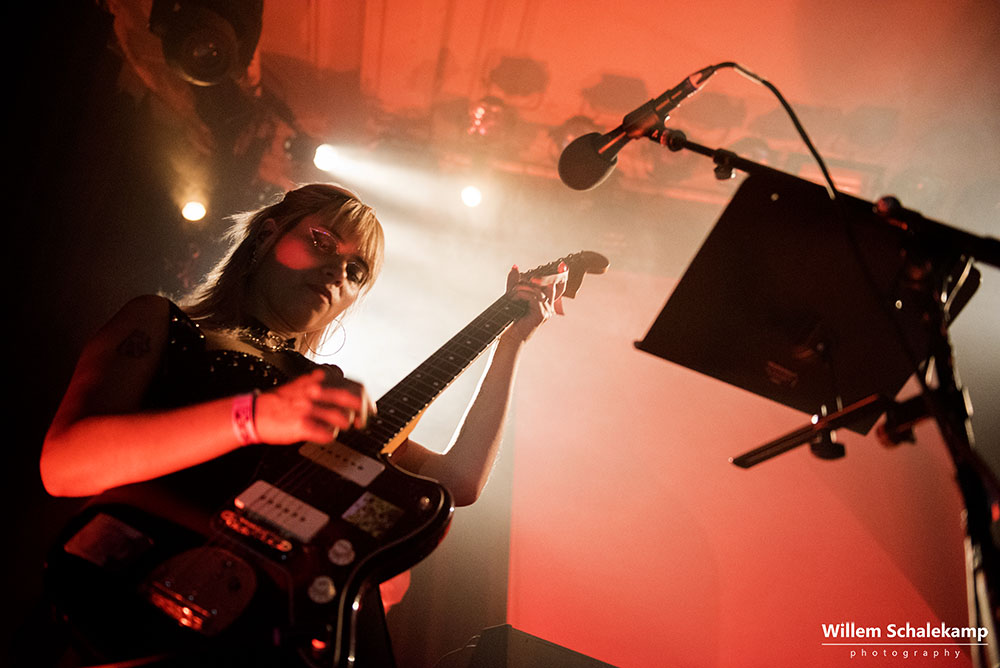 Voordat we naar Hilvarenbeek afreizen voor Best Kept Secret konden we nog net even het optreden van Lov3less meepakken in de bovenzaal van Paradiso. Lov3less is het nieuwe project van Simone van Vugt, op het podium geflankeerd door o.a. Jasja Offermans (bas) en Sophia de Geus (gitaar). Nerveus als ze was, zette ze een spetterend optreden neer. De beelden…