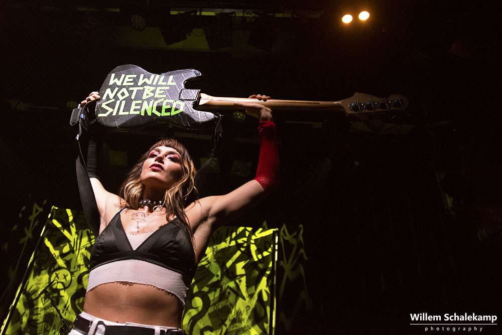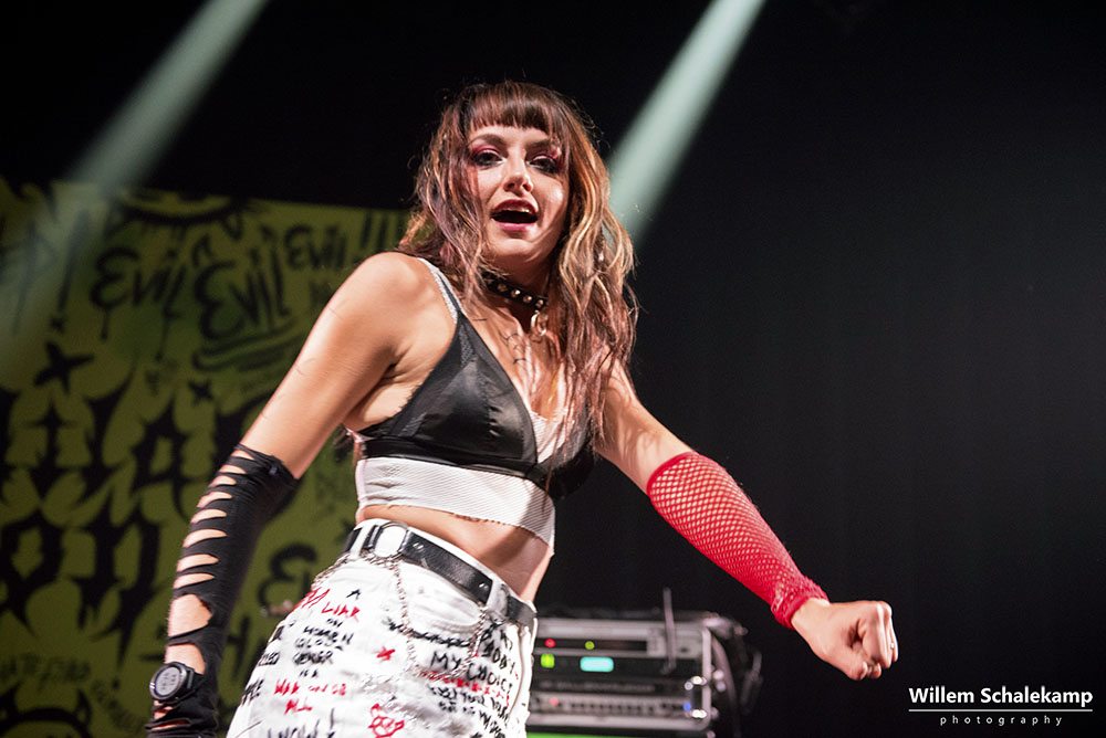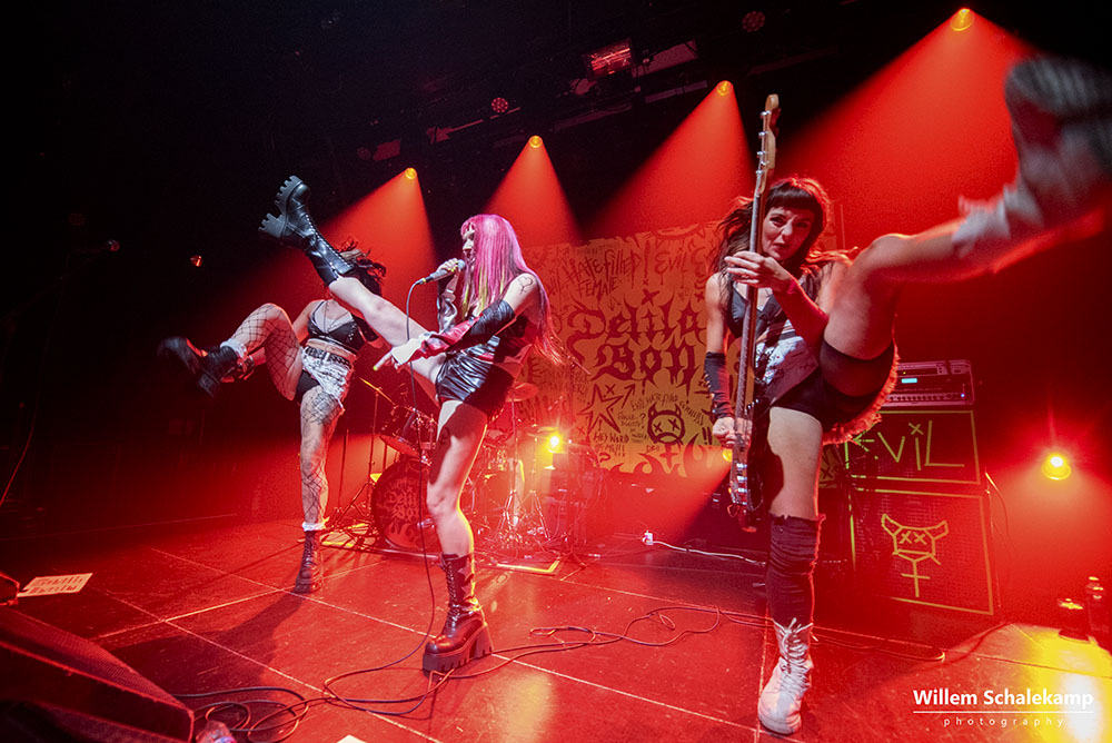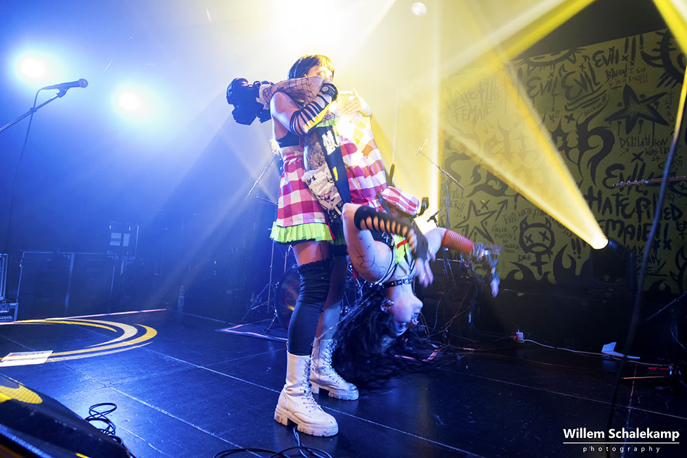 Rage Queen Delilah Bon is het alter ego van Lauren Tate. Ze mixt hiphop, nu-metal en het riot grrrl-ethos tot wat ze ‘Brat Punk’ noemt. Muziek bedoelt als empowerment voor vrouwen, non-binaire personen en de LGBTQIA+ gemeenschap. Onlangs bracht ze haar debuutalbum Evil, Hate Filled Female uit. In de Melkweg gaf ze een heerlijk energieke show met een duidelijke boodschap, maar vooral ook met heel veel plezier. Voor even was dit de veilige plek waar iedereen zichzelf kon zijn. De beelden…