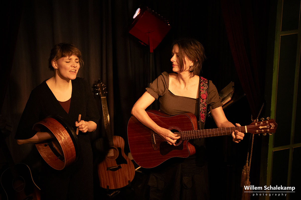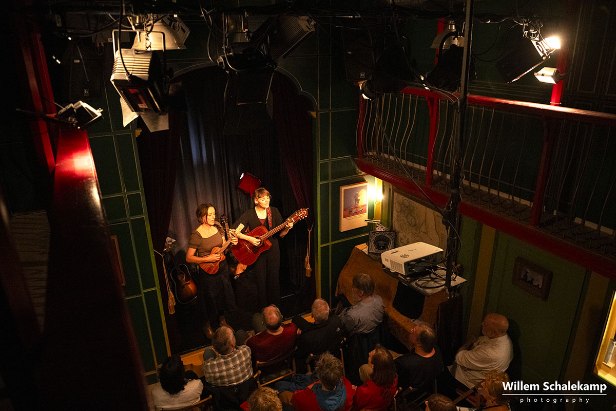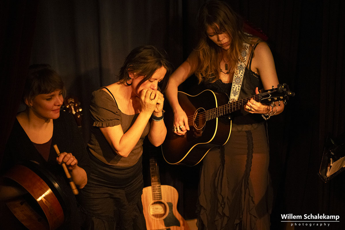 The Lasses is een Nederlands duo bestaande uit Sophie Janna en Margot Merah. Ze brengen Ierse, Schotse en Amerikaanse folk en spelen daarnaast ook eigen nummers. Naast hun gewone optredens, nodigen ze één maal per maand een secret guest uit in het prachtige, intieme Torpedo theater in Amsterdam. Dit maal is het de Britse Rachel Croft die enkele uren daarvoor is aangekomen in de hoofdstad. Heel veel tijd is er dus niet om elkaar te leren kennen en met elkaar te repeteren. Des te mooier is het eindresultaat. The Lasses openen de avond waarna Rachel Croft voor de pauze vooral traditionals speelt. Na de pauze krijgen we werk van haar nieuwe EP A Mind Made Of Sky, waar ze zelf het artwork voor maakte, te horen. Nummers die ze normaal gesproken met band speelt. Het gemak waarmee ze alles aan elkaar babbelt, ooit zichzelf op straat aangeleerd, is ontwapenend. Tot slot spelen ze nog een gemeenschappelijke set. Ongedwongen en met veel spelplezier, maar met de klasse van beide artiesten. Prachtige avond. De beelden…