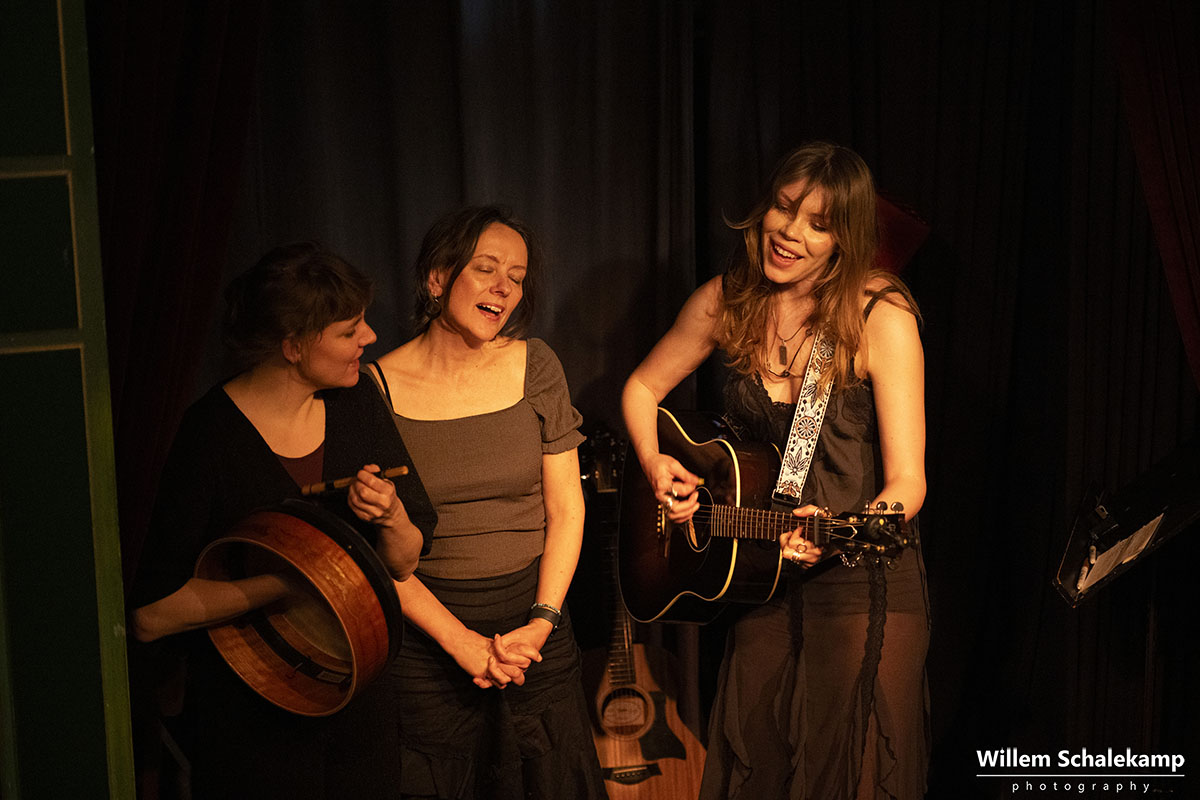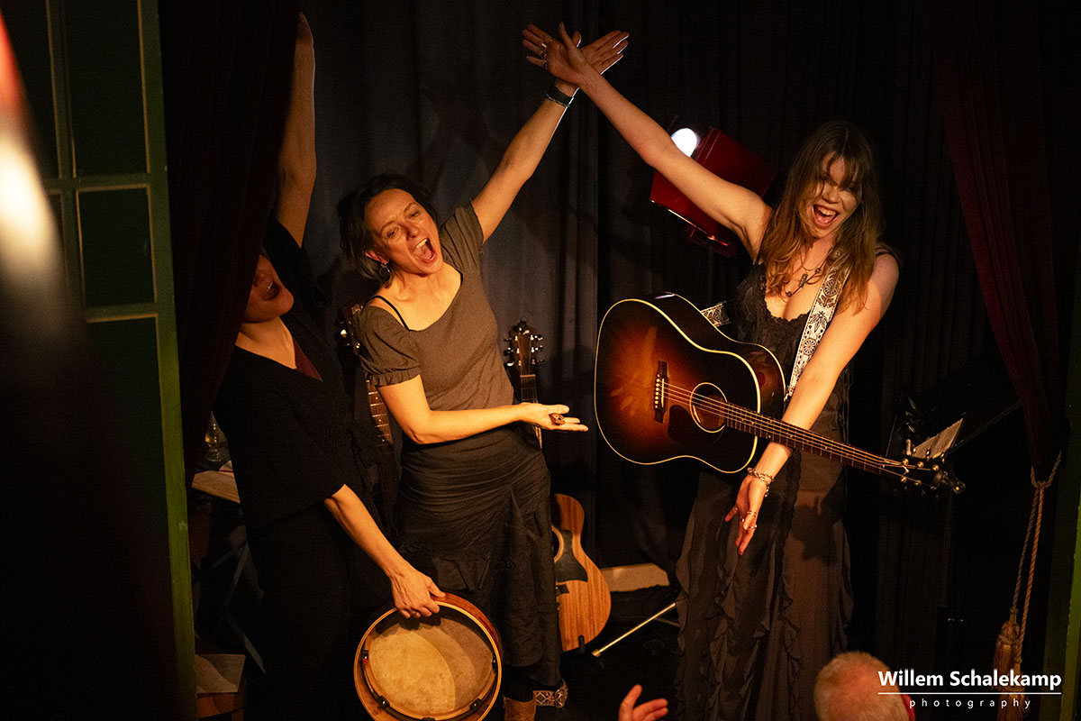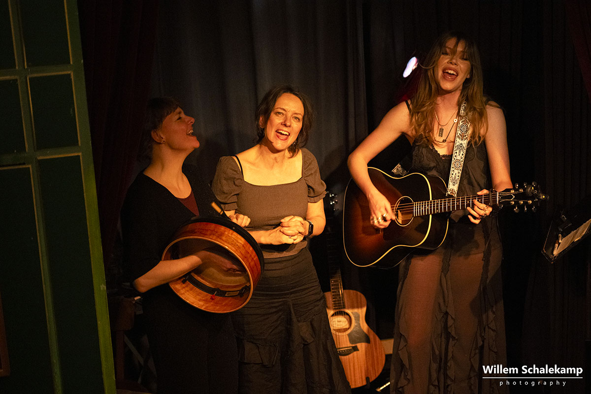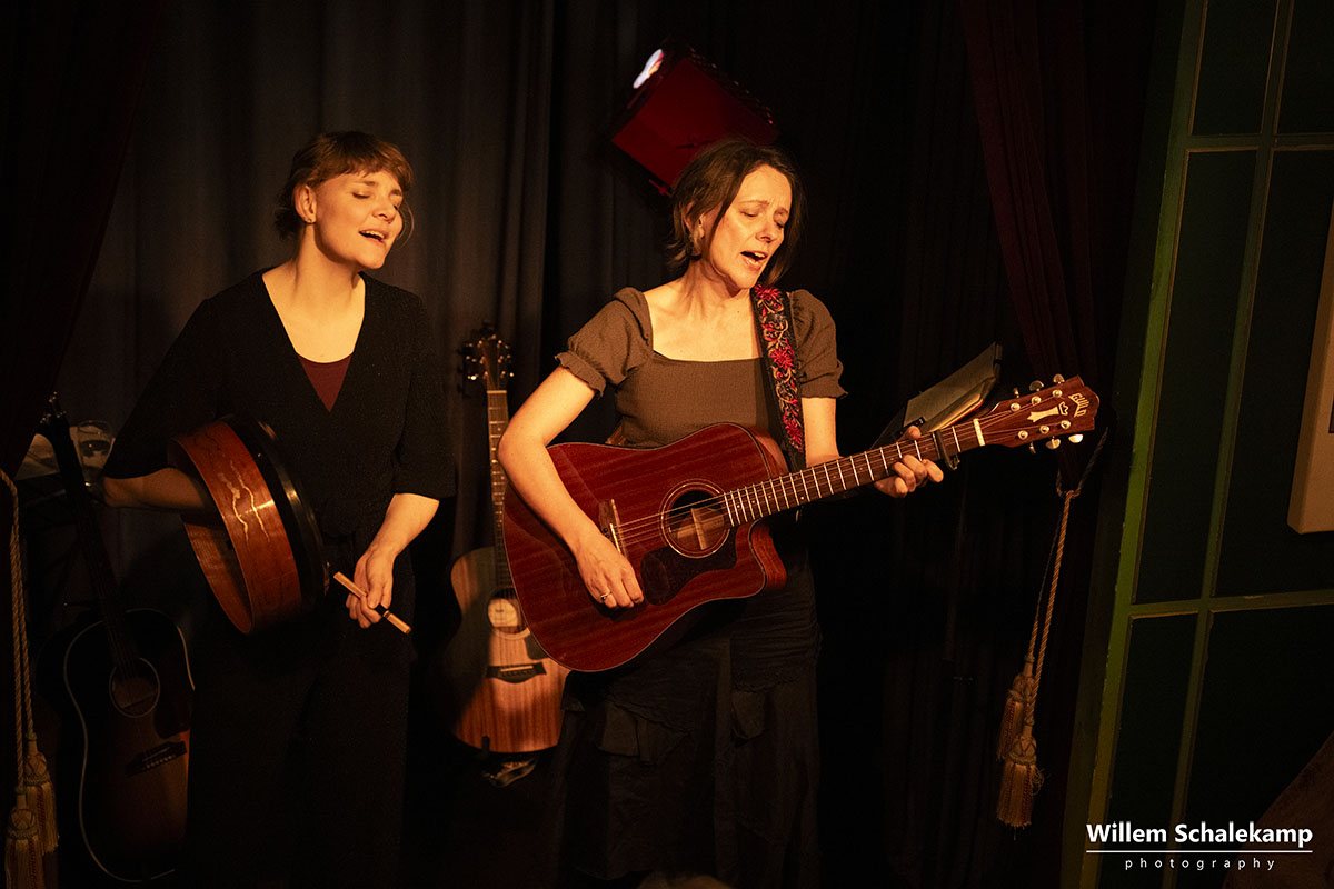 The Lasses is een Nederlands duo bestaande uit Sophie Janna en Margot Merah. Ze brengen Ierse, Schotse en Amerikaanse folk en spelen daarnaast ook eigen nummers. Naast hun gewone optredens, nodigen ze één maal per maand een secret guest uit in het prachtige, intieme Torpedo theater in Amsterdam. Dit maal is het de Britse Rachel Croft die enkele uren daarvoor is aangekomen in de hoofdstad. Heel veel tijd is er dus niet om elkaar te leren kennen en met elkaar te repeteren. Des te mooier is het eindresultaat. The Lasses openen de avond waarna Rachel Croft voor de pauze vooral traditionals speelt. Na de pauze krijgen we werk van haar nieuwe EP A Mind Made Of Sky, waar ze zelf het artwork voor maakte, te horen. Nummers die ze normaal gesproken met band speelt. Het gemak waarmee ze alles aan elkaar babbelt, ooit zichzelf op straat aangeleerd, is ontwapenend. Tot slot spelen ze nog een gemeenschappelijke set. Ongedwongen en met veel spelplezier, maar met de klasse van beide artiesten. Prachtige avond. De beelden…