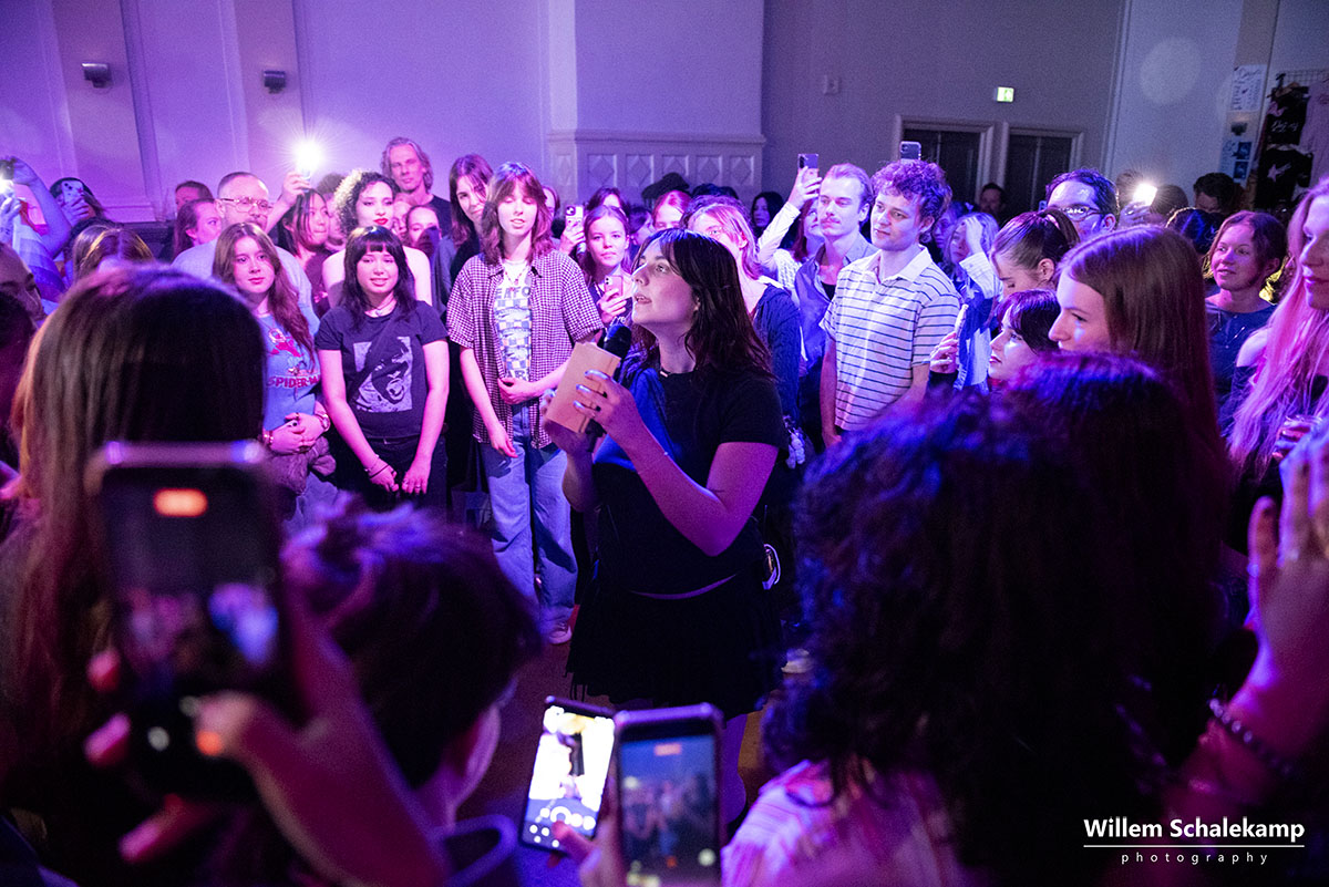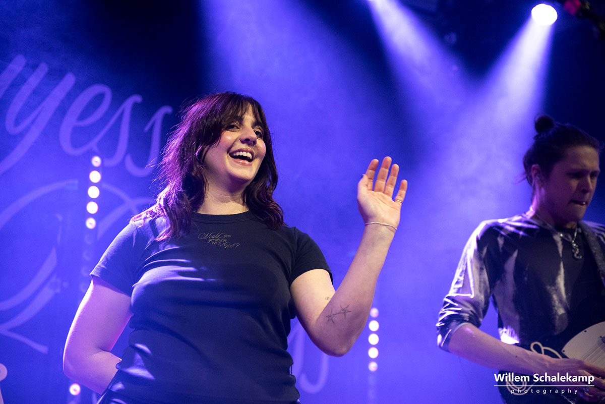 Déyyess, eigenlijke naam Hannah Butcher, is een snel opkomende nieuwe artiest binnen de queer community. Als “the people’s lesbian princess” bouwt ze een fanatieke fanbase op waarvan de eerste volgelingen rechtstreeks vanuit Parijs al om zeven uur ’s ochtends voor de deur van Paradiso zaten. Onlangs bracht Déyyess haar debuut EP Claire uit met nummers die vol overgave meegezongen werden. De beelden…