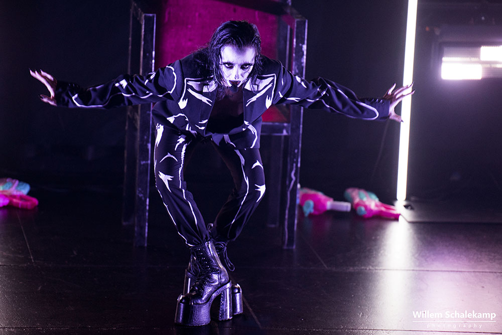 Bambie Thug is de artiestennaam waaronder Bambie Ray Robertson optreedt en dit jaar voor Ierland met een indrukwekkend optreden uitkwam op het songfestival in Malmö. Bambie Thug identificeert zichzelf als non-binair en maakt naar eigen zeggen ‘ouija-pop’, een mix van punk, pop, rock, elektro en metal. De Oude Zaal van de Melkweg beleefde een intense, maar ook warme performance die in het teken stond van ‘de vrijheid om te zijn wie je wilt zijn’. Iets dat maatschappelijk nog lang niet geaccepteerd is bleek na afloop in de trein maar weer, waar een stel bezoekers uitgelachen werd om hun uiterlijk, hun anders zijn. Er is nog een lange weg te gaan.